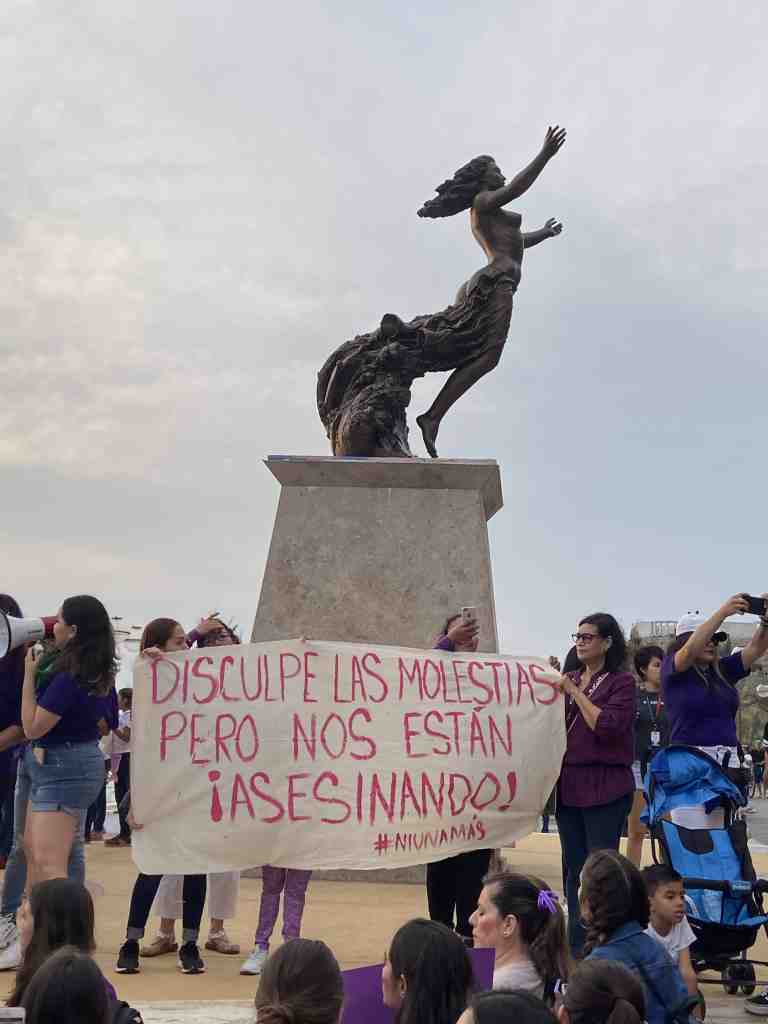 Yo no encontré quien me acompañara a la marcha que se dio pie en Mazatlán. Yo sufro de ansiedad y ataques de pánico, así que salir sola de mi casa siempre es un reto para mi. (Ya se imaginarán) Y tenía mucho miedo de que el evento fuera atacado por hombres o mujeres en contra. (En CDMX había rumores de ataques de ácido) Mi novio me dijo yo te acompaño, ya estoy harto de esta situación, te apoyo. Sus palabras fueron muy alentadoras pero la marcha en mi ciudad fue separatista, él no podía marchar conmigo. Le expliqué y lo entendió. Decidimos que él vería de lejos y al final nos buscamos para irnos juntos. Y así le hicimos. Me baje del carro y caminé al punto de reunión. Llegué sola pero me sentí acompañada.