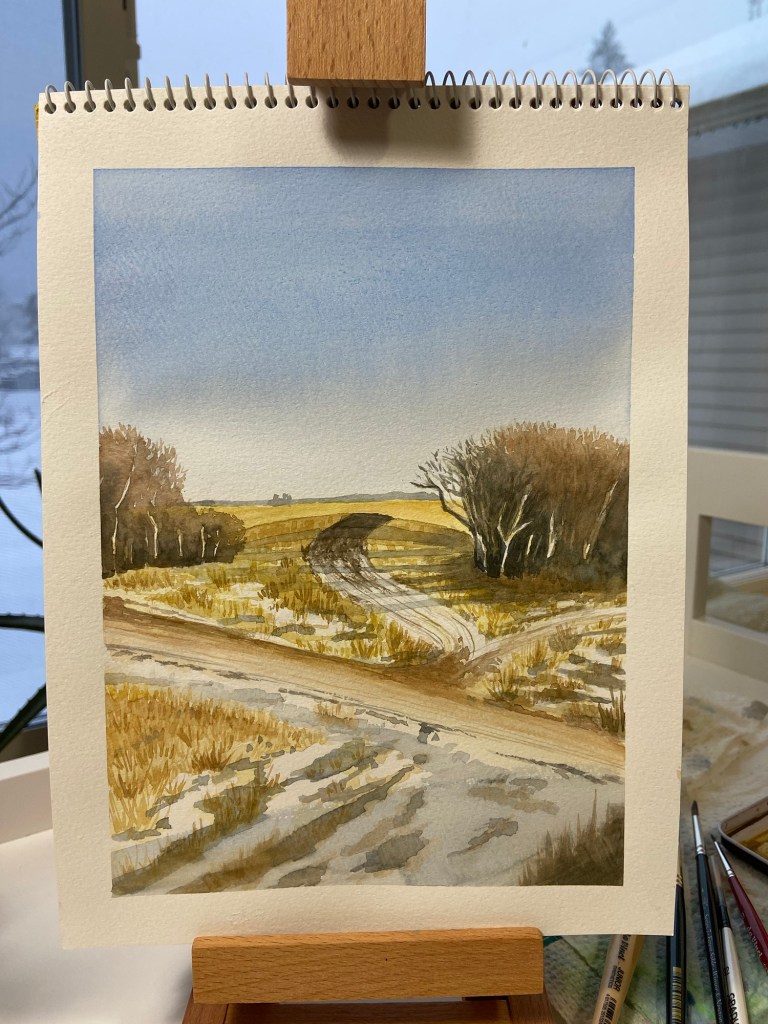 Here are some of my paintings on the go and some I worked on when we returned from our holiday. Painting during the winter feels so eerie. The sun doesn’t shine as bright and it likes to hide early. Maybe being indoors for most of the winter sparked my interest in plein air painting. Does it count as plein air if you are inside a train cart? I’m not sure. But as soon as the weather allows I will give it a try.